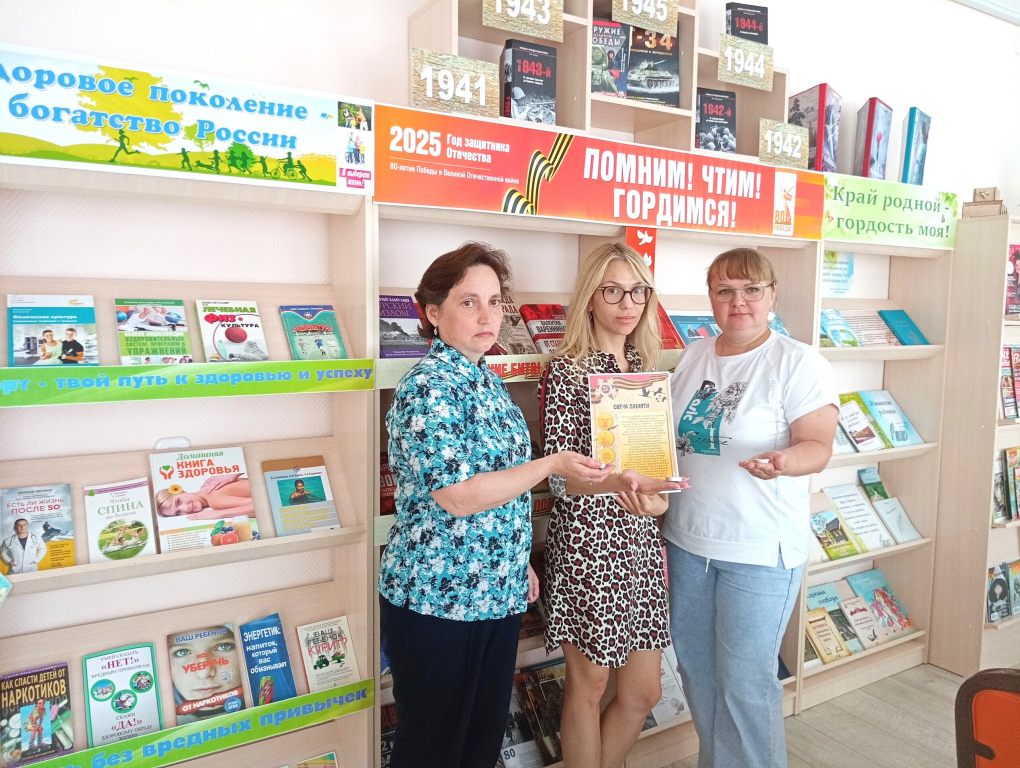 22 июня 2025 года Россия отмечает 84-ю годовщину начала Великой Отечественной войны и вспоминает защитников Отечества. Библиотекари Районной библиотеки и волонтеры отряда «Пульс» присоединились к всероссийской акции «Свеча памяти». В эти скорбные дни, когда вспоминаем трагические события, «Свеча памяти» становится символом нашей общей боли и безграничной благодарности тем, кто отдал свои жизни за мирное небо над головой. Это не просто акция, это молчаливый диалог поколений, напоминание о цене, которую заплатил наш народ за свободу.