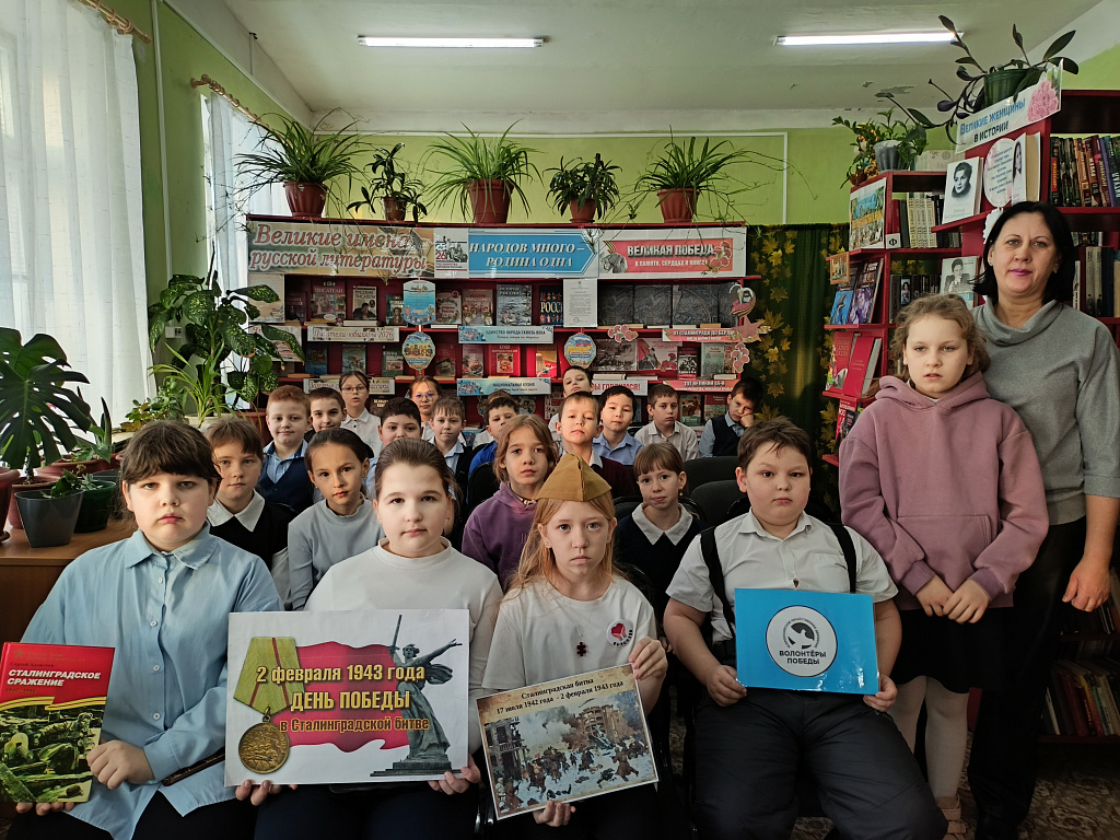 Библиотекарь рассказала юным читателям о 200 огненных днях обороны города — с 17 июля 1942 по 2 февраля 1943 года. Ребята узнали о героизме защитников Дома Павлова, о жесточайших боях на Мамаевом кургане, о стойкости солдат и мирных жителей, которые ценой невероятных усилий отстояли город.
