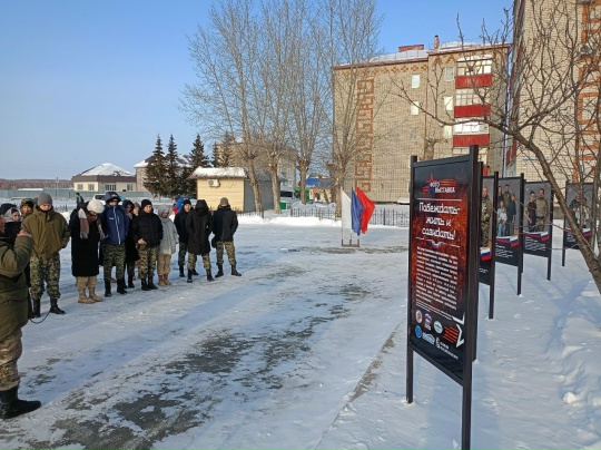 На площади Ишимского районного Дворца культуры продолжаются презентации фотовыставки «Побеждать — жить и созидать», которая выражает уважение, благодарность и поддержку участникам специальной военной операции и их близким.