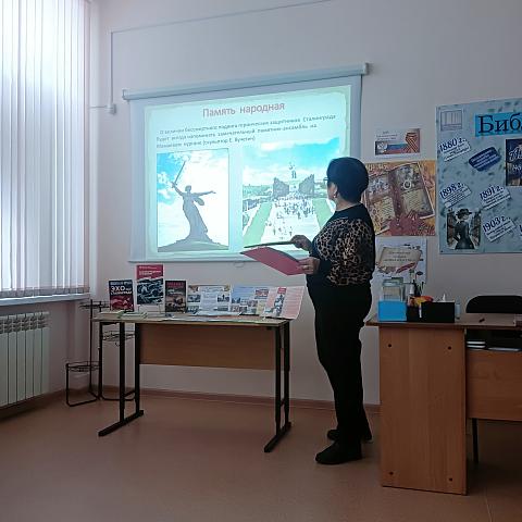 К мероприятию была оформлена книжная выставка, посвященная празднованию 83-ей годовщины разгрома советскими войсками фашистских войск в Сталинградской битве.
