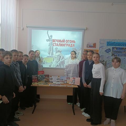 В преддверии празднования 83-ей годовщины разгрома советскими войсками фашистских войск в Сталинградской битве 28 января библиотекарь Прокуткинской сельской библиотеки провела час памяти «Вечный огонь Сталинграда» для учащихся Прокуткинской СОШ.