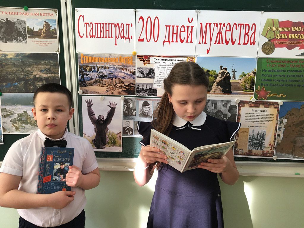 Ребята приняли участие во Всероссийской акции «200 минут чтения: Сталинграду посвящается» читали рассказы: «Ни шагу назад!», «Мамаев курган», «Сталинградская оборона», «Знаменитый дом», «Берлинская знаменитость», «Крепость», «Данко», а также о подвигах советских людей, защитивших в смертельной схватке с врагом Сталинград.