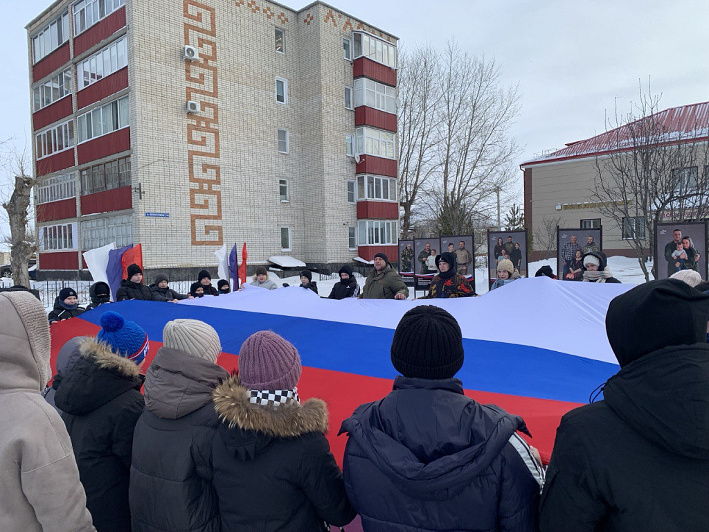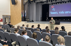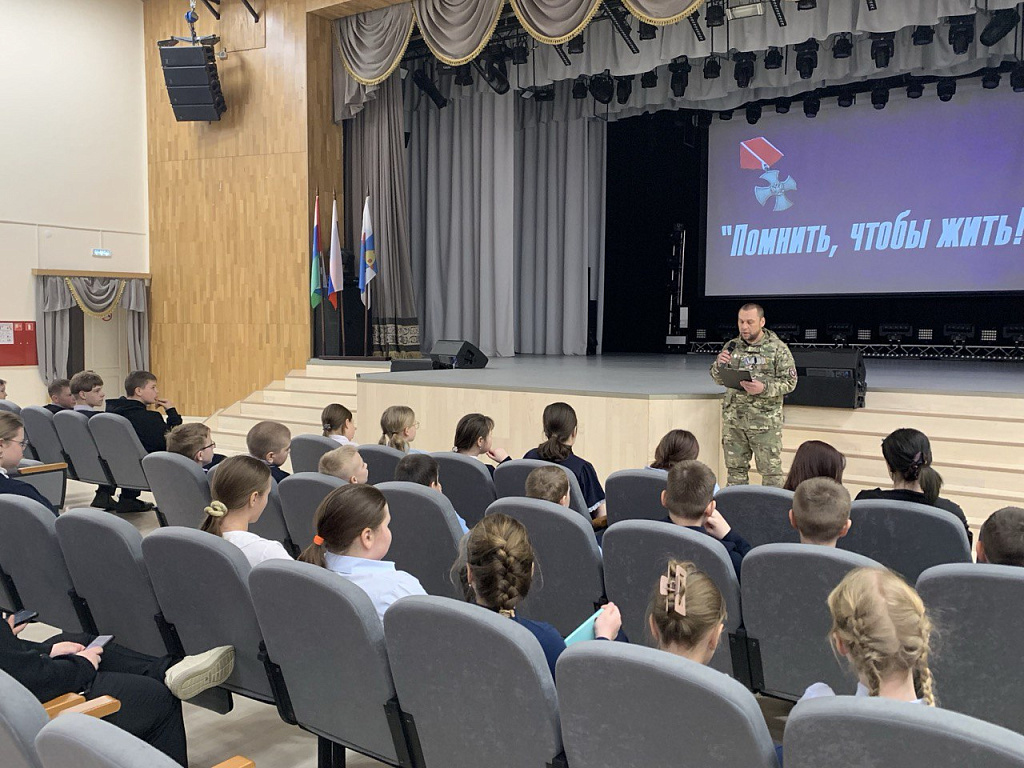 Далее состоялся патриотический час "Помнить, чтобы жить" по мотивам документального фильма «Суджа. Железный поток», повествующего о героической операции российских бойцов, который провел председатель местного отделения Тюменской региональной общественной организации «Держава», участник СВО, ветеран боевых действий Гуменюк Юрий.