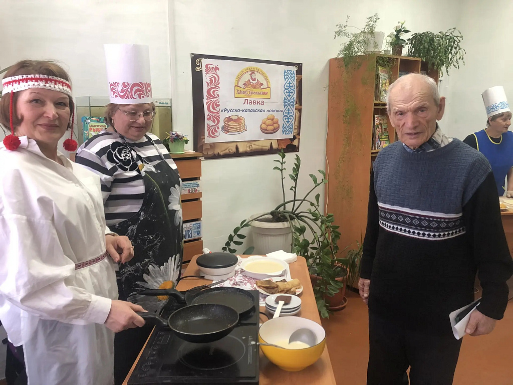 Посетив хлебосольную лавку «Русско-казахская ложка», посетители погрузились в мир традиций двух народов, попробовали вкуснейшие блюда русской и казахской кухни: блины и баурсаки. Желающие могли поучаствовать в кулинарном процессе: самостоятельно испечь блин или разрезать тесто на баурсаки. Серебряные волонтеры с удовольствием делились рецептами, подсказывали, как правильно перевернуть блин, делились различными кулинарными премудростями.