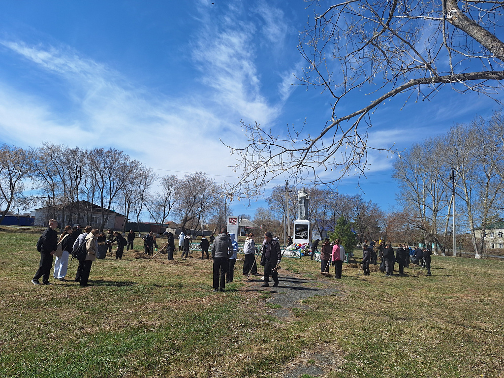 Волонтёры организовали патриотическую акцию «Благоустройство памятников погибшим односельчанам» по уборке и благоустройству памятника погибшим воинам в Великой Отечественной войне и прилегающей территории около памятника.